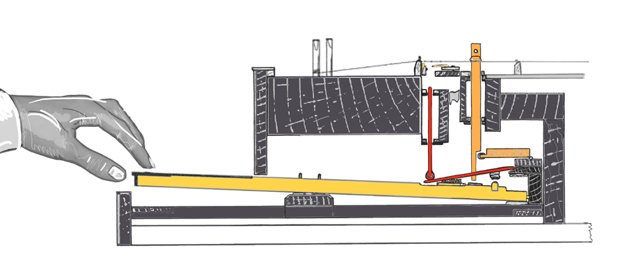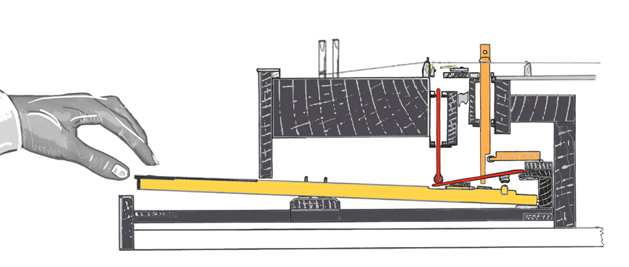 Tastendruck nicht etwa wie beim Klavier, Hämmerchen, sondern