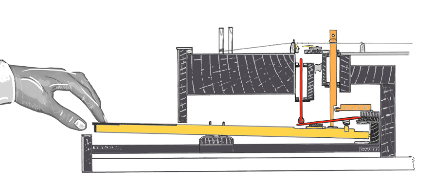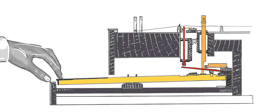 Holzstäbchen - die Tangenten - gegen die Saiten geschleudert